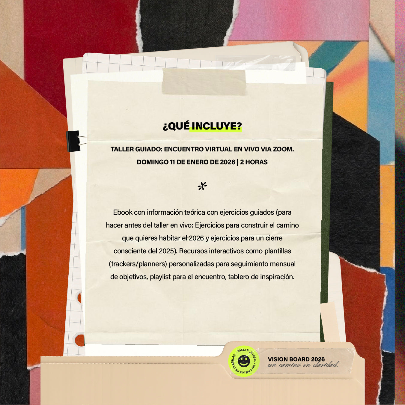 Además del Vision Board que crearás durante el encuentro, tendrás acceso a: